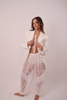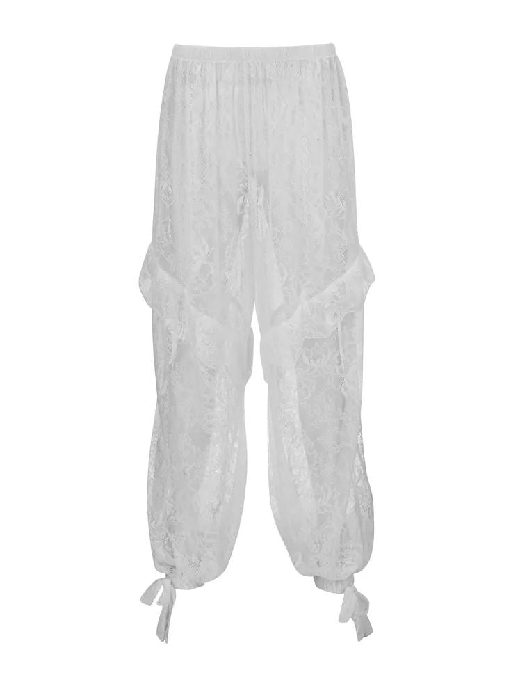 מכנס בגזרת בלון מבד תחרה עדין ועשיר עם גומי במותן.