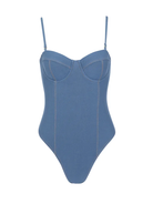 בגד ים שלם בגזרת ברזלים מבד גינס לייקרה מחטבת.