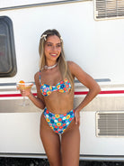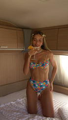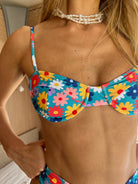 בגד ים פרחוני בגוון ירוק טורקיז.